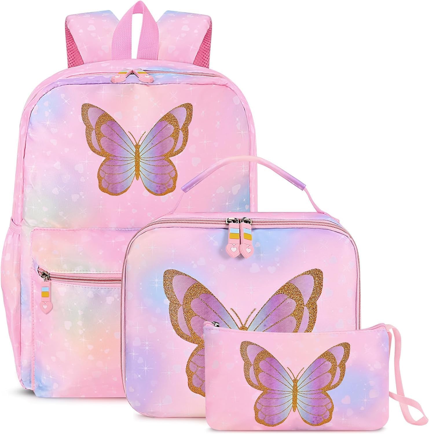 Cokouchyi 3 Pcs Kids Backpack Set with Lunch Box & Pencil Case, Lightweight Preschool Backpack for Girls Age 3-8, Kids Book bag Elementary, Butterfly