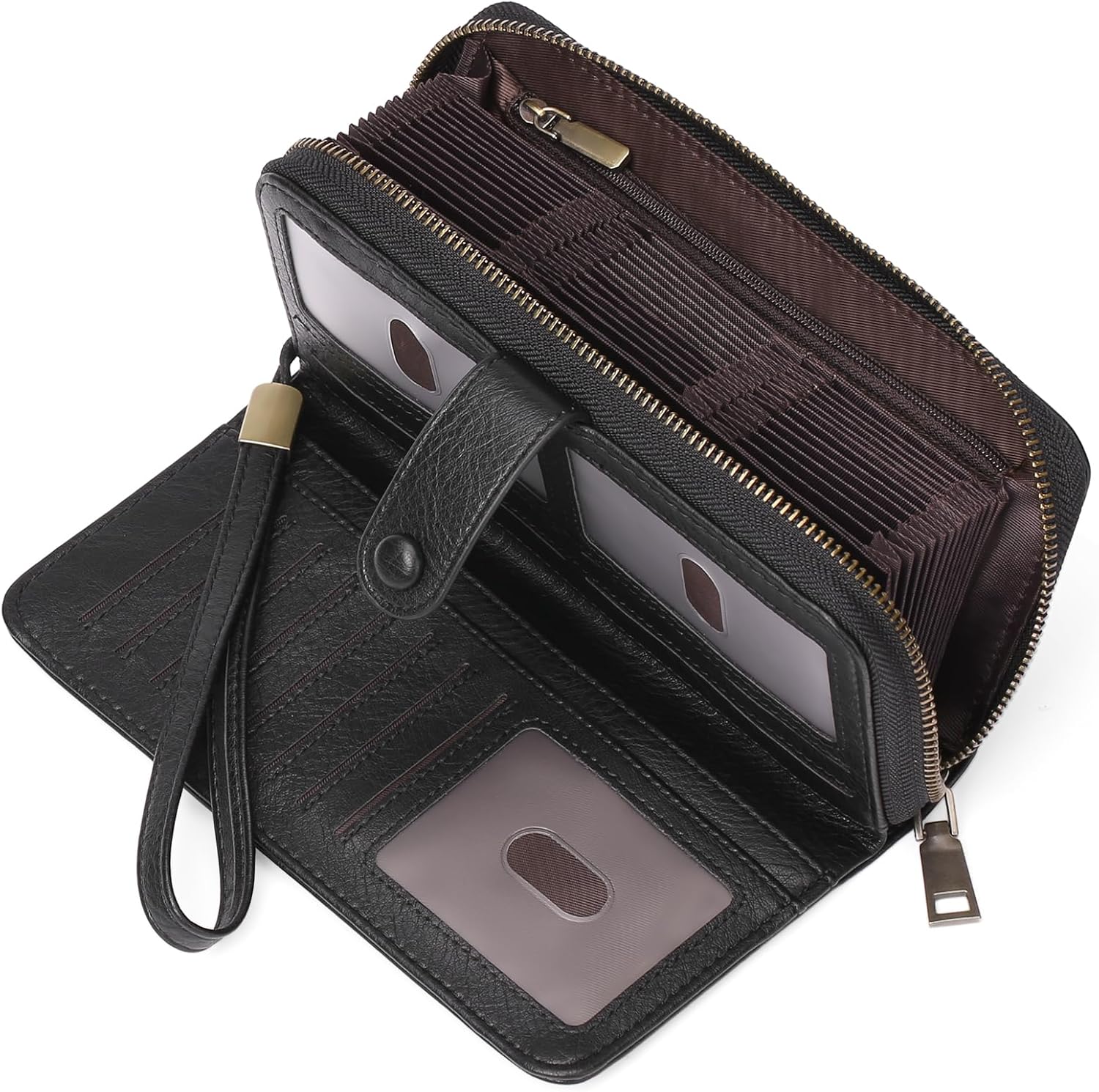 GAEKEAO Leather Credit Card Holder Wallet for Women RFID Blocking Large Capacity Bifold Zipper Card Case Organizer with Wristlet 45 Slots