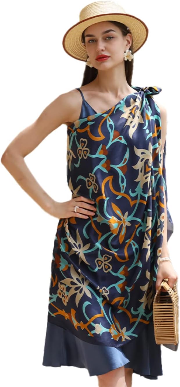 DANA XU Women's 100% Mulberry Satin Silk Pashmina Shawl Wraps Extra Large Floral Scarf for Evening Dresses, Soft Oversized