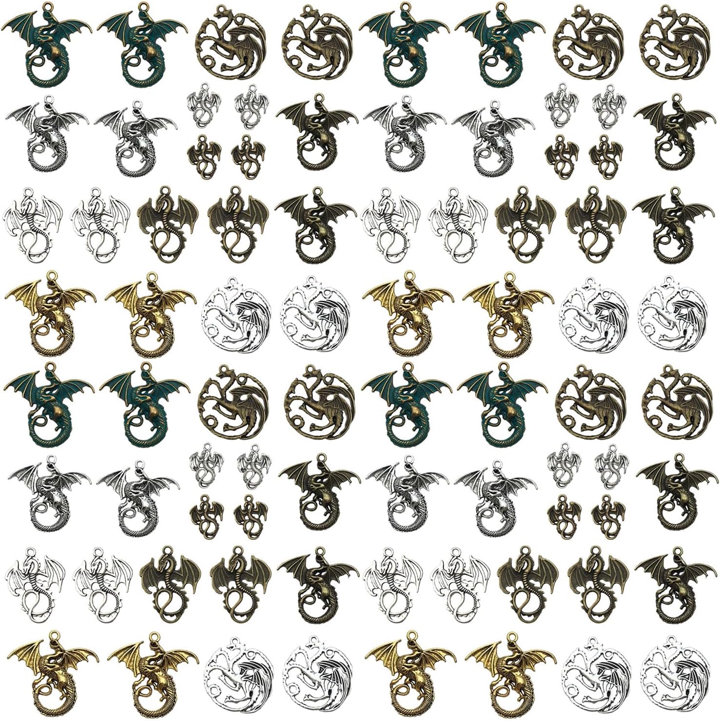Youdiyla 20Pcs Little Fire Dragon Series Antique Silver KC Gold Pendant Jewelry Making DIY Keychain Earrings Pendant Various Design Charms for Jewelry Making Bracelets Necklace (M15)