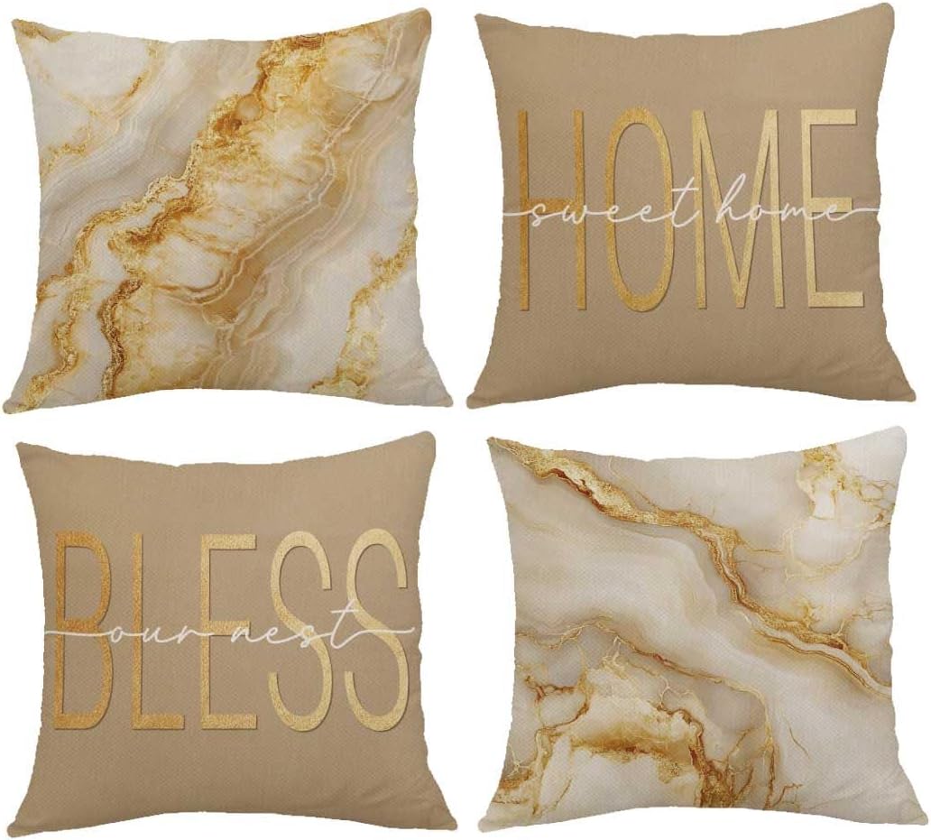ORMAN Beige Gold 18x18 Marble Pillows Covers Set of 4 Decorative Pillowcase Cushion Cover for Car Sofa Bedroom