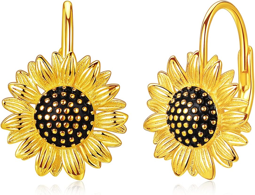 Sunflower Earrings for Women 925 Sterling Silver Gold Plated Sunflower Leverback Earrings Jewelry Birthday Gifts for Women