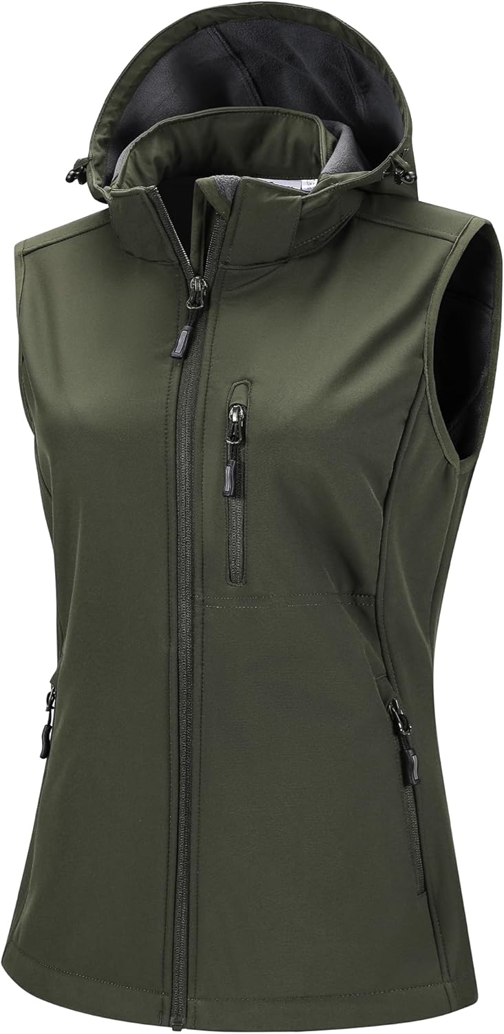 33,000ft Women's Hooded Lightweight Softshell Vest Fleece Lined Windproof Zip Up Sleeveless Jacket for Hiking Golf Running