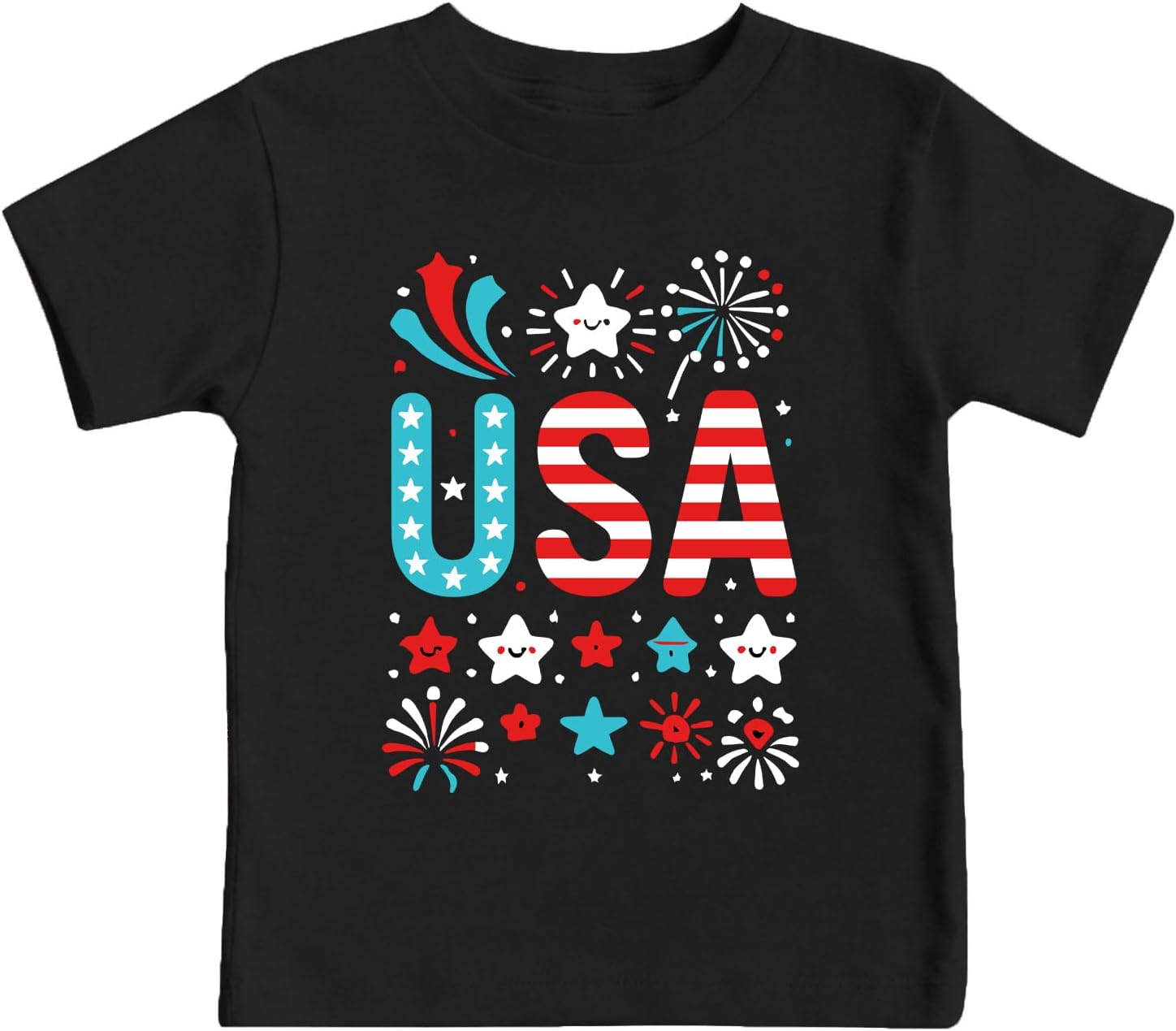 USA American Flag Shirts Little Kids Boys Girls 4th of July Patriotic T-Shirt Toddler Summer Short Sleeve