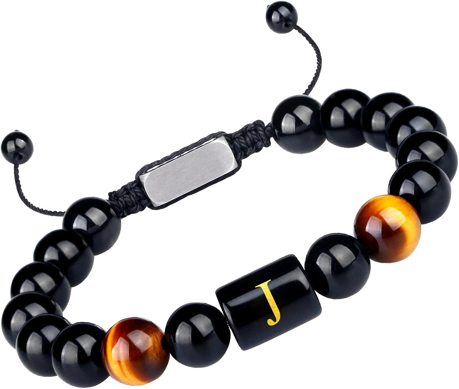 Letter Initial Letter A-Z Bracelet for Men Teens Handmade Natural Black Onyx Tiger Eye Stone Bead Bracelet Meaningful Gift Birthday Anniversary