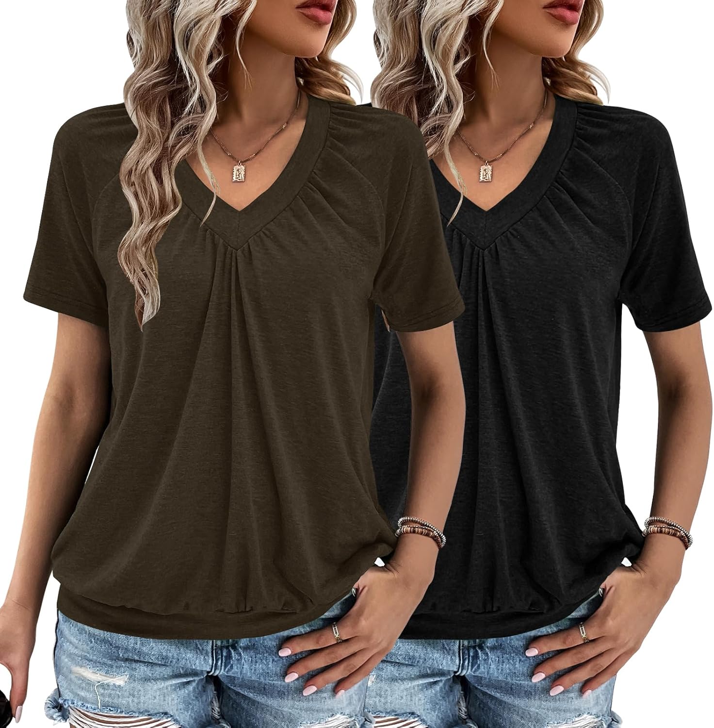 2 Pack Summer Tops for Women V Neck Shorts Sleeve Casual Ruched Tops Women T Shirts Clothes Trendy 2026