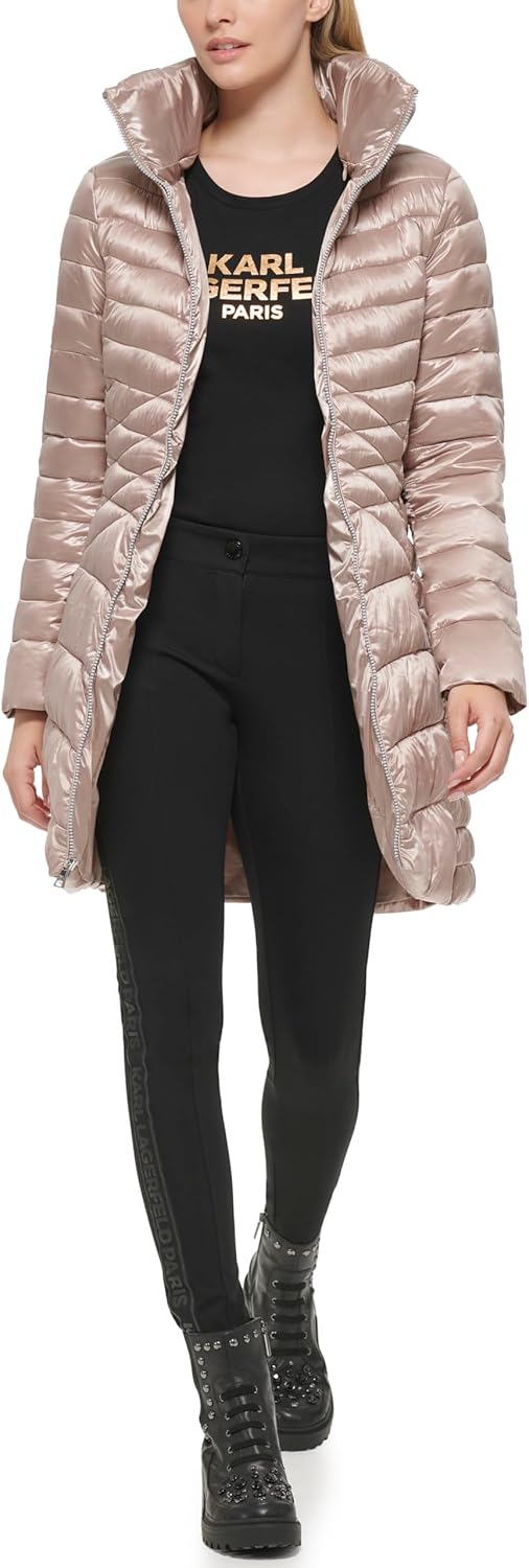 KARL LAGERFELD womens Chevron Quilted Full Length Puffer Jacket