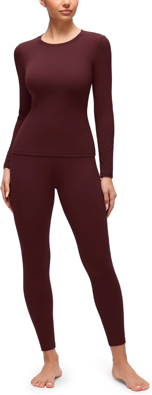 CRZ YOGA Softembrace Fleece Lined Thermal Underwear Set for Women - Soft Casual Base Layer Long Johns Warm Pajamas Top Bottom