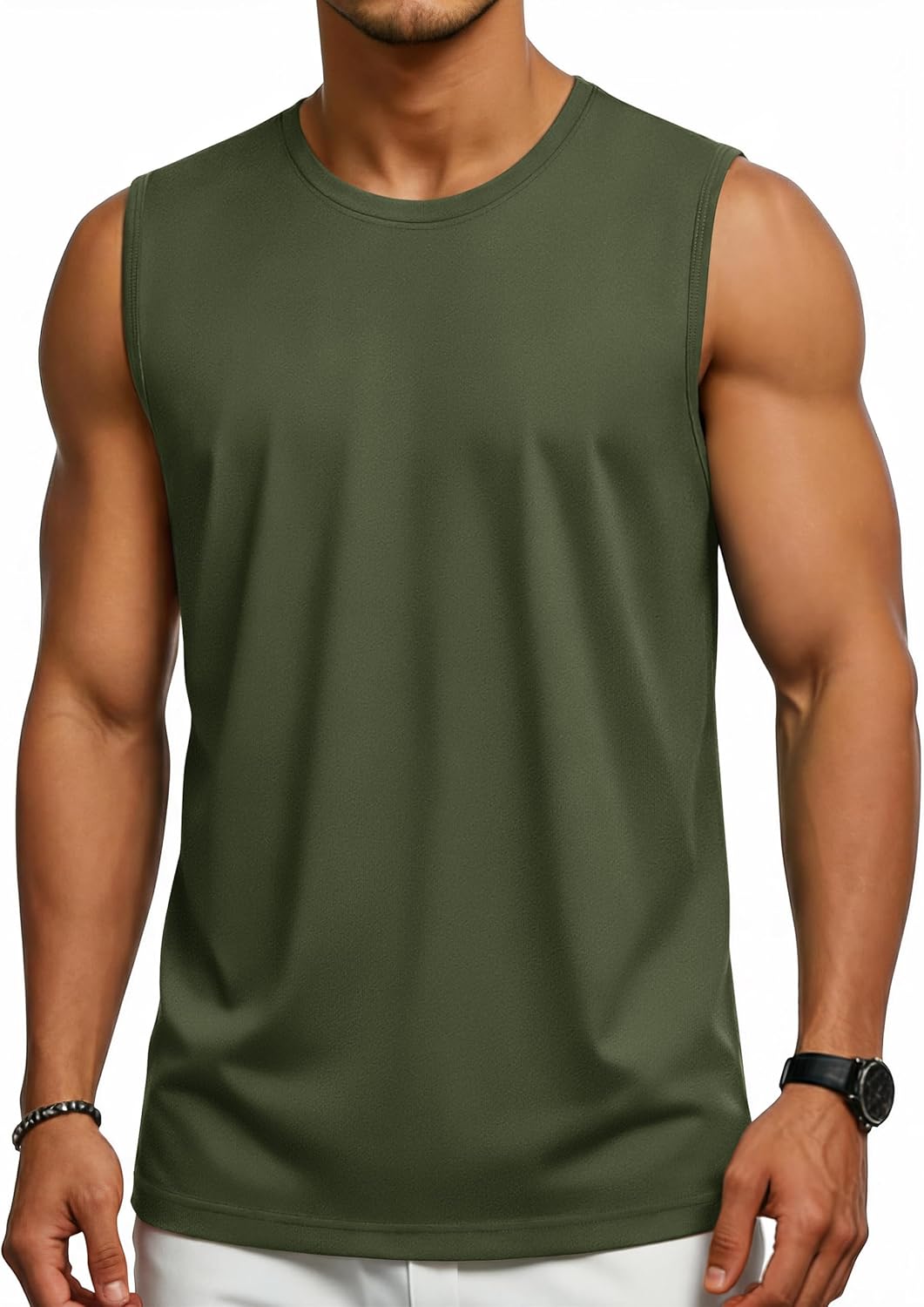 Cotrasen Men's Tank Top UPF 50+ Cotton Sleeveless Shirt Lightweight Casual Gym Workout Shirts Cooling Muscle Tee Shirt