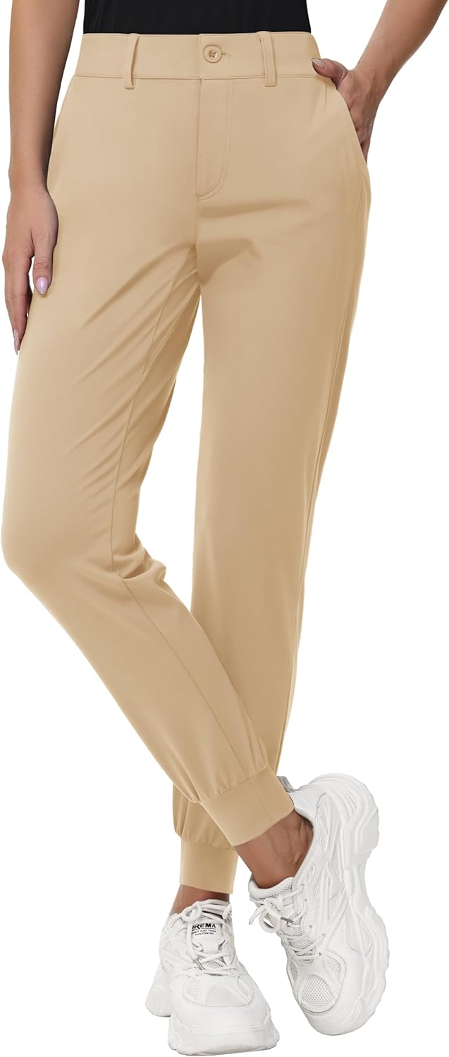Women's Stretch Golf Joggers Pants - Tapered Athletic Casual Work Dress Travel Sweatpants with Zipper Pockets UP50