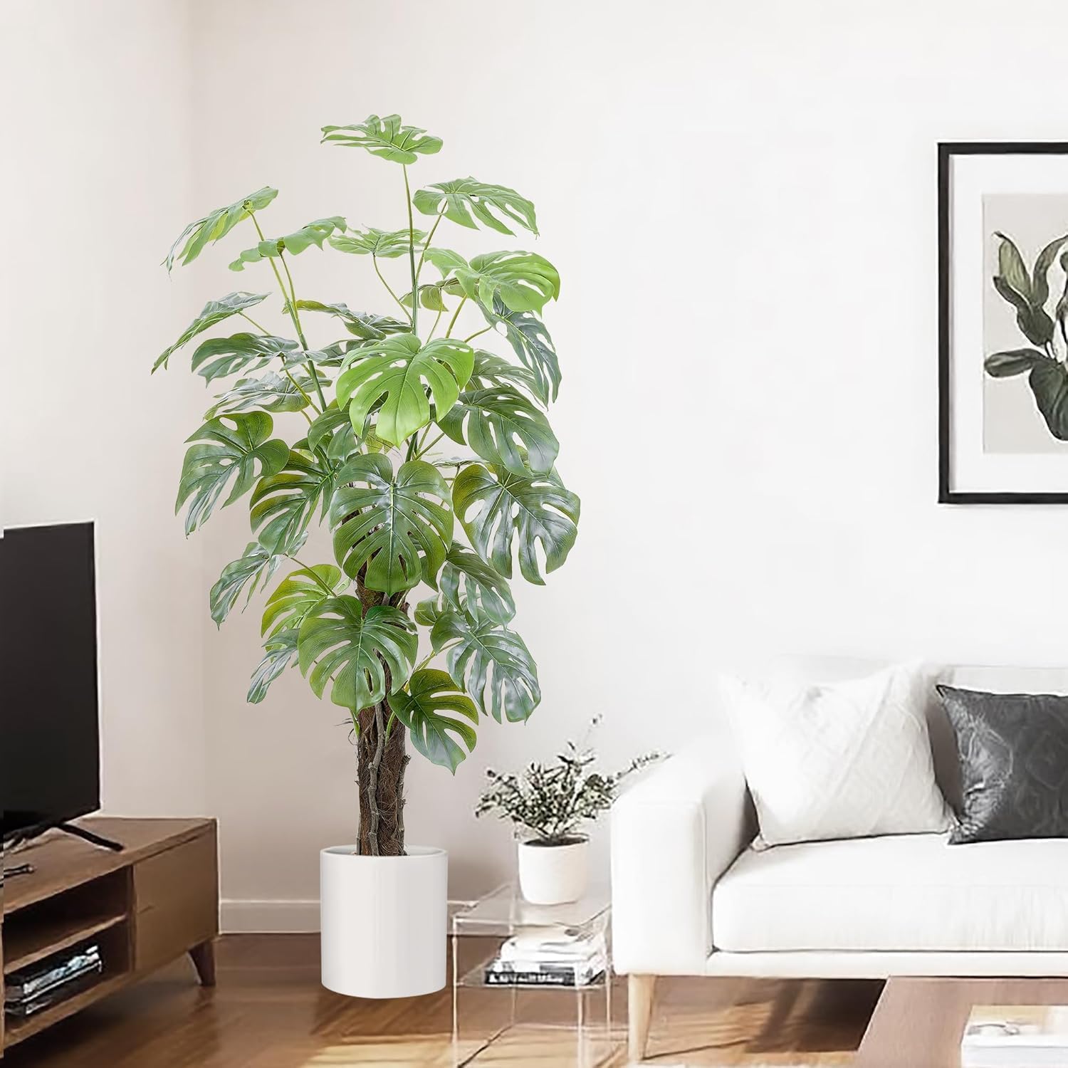 - 🌿 Lifelike and Realistic Details: The leaves are meticulously crafted from high-quality premium PE,featuring clear textures and a vibrant,bright green color, perfectly replicating the shape and texture of a real Monstera deliciosa.They feel realistic to the touch,are safe and odorless,providing a beautiful and worry-free decorative experience