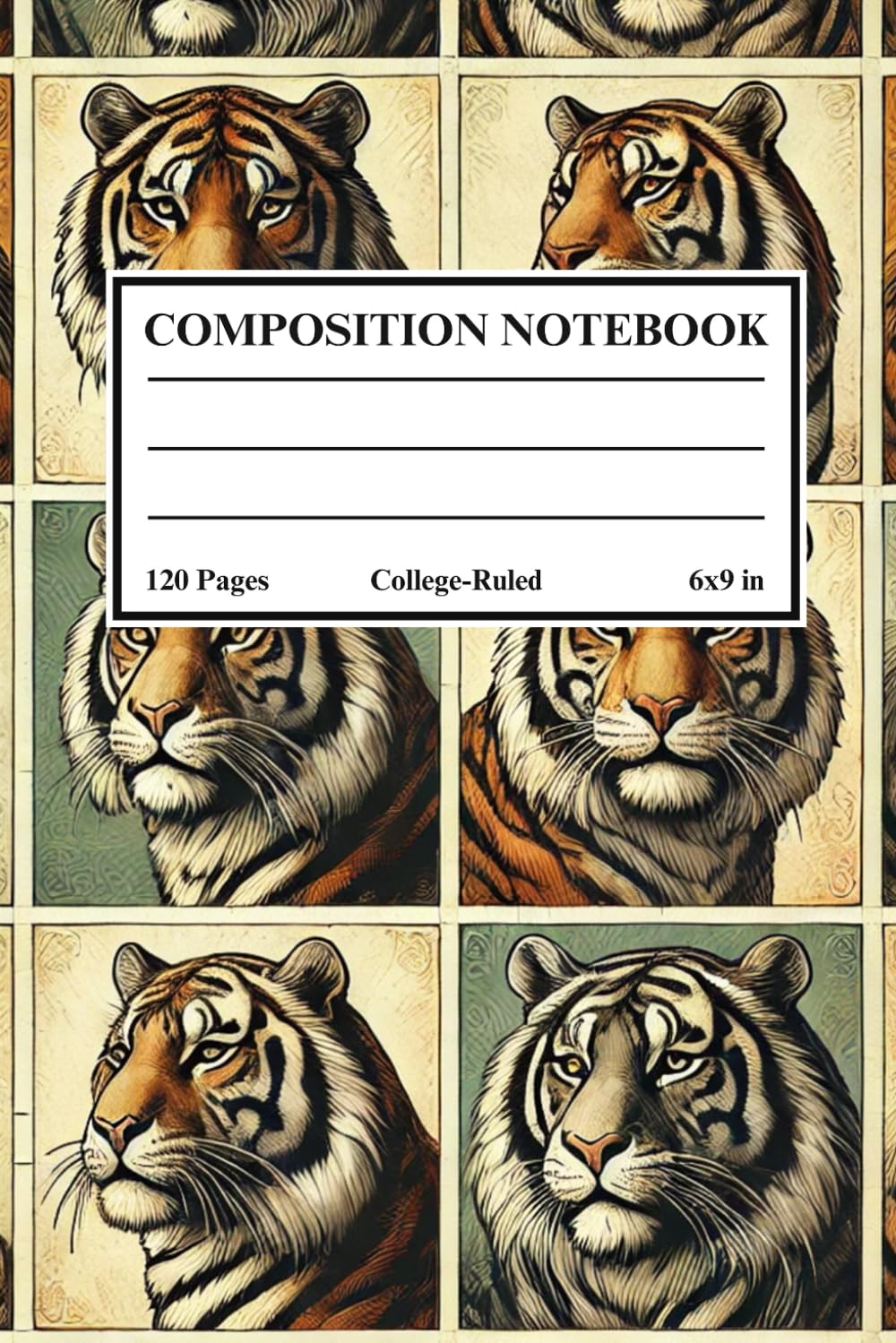 Composition Notebook: Vintage Tigers College-Ruled Lined Journal Composition Notebook Book for College, School, Office or Work | 6x9 Inches | 120 Pages