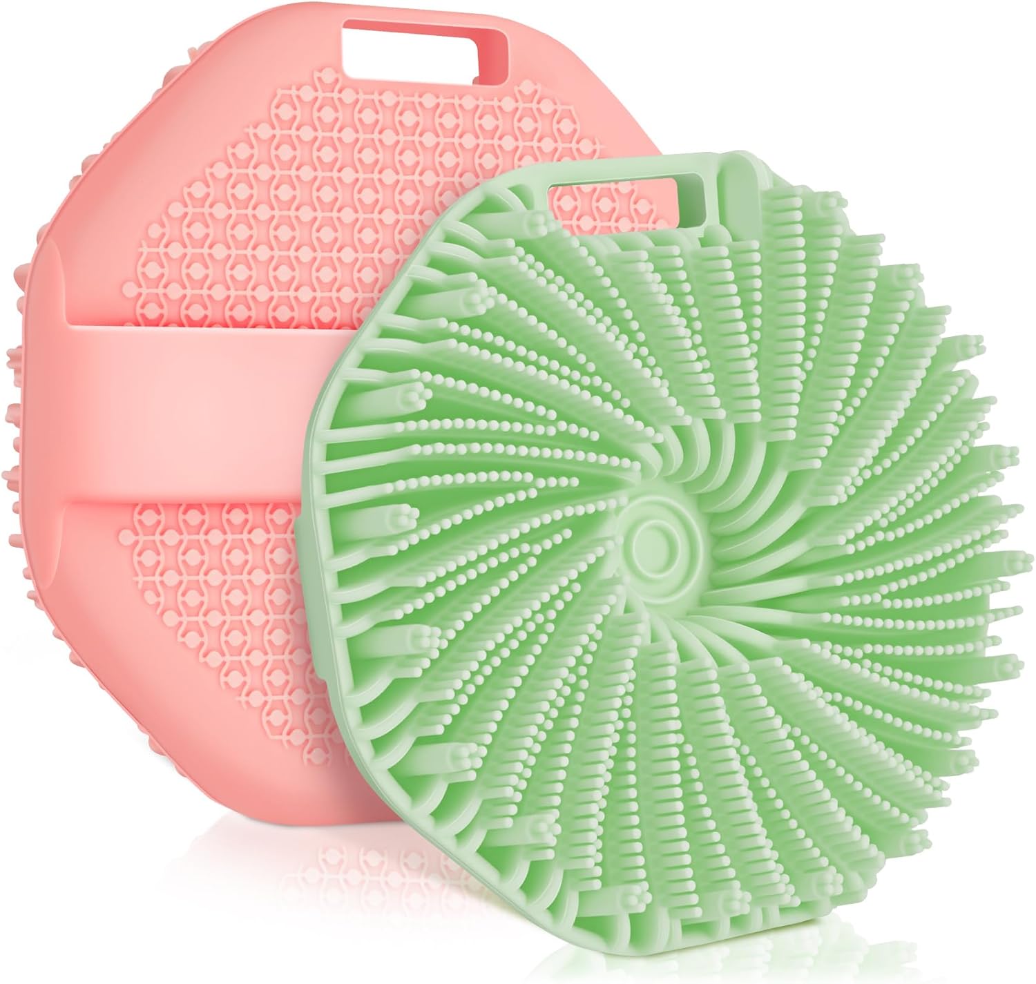 - Premium Quality: You will get 2 pcs body scrubbers in pink and mint green color which are made of high quality silicone material, does not contain bpa, gentle and safe for all skin types. Removing dirt and oil while having no irritation or injury to skin. Silicone body scrubber lasts longer than traditional sponges or loofahs, you don't need to worry about replacing your shower body scrubber too often