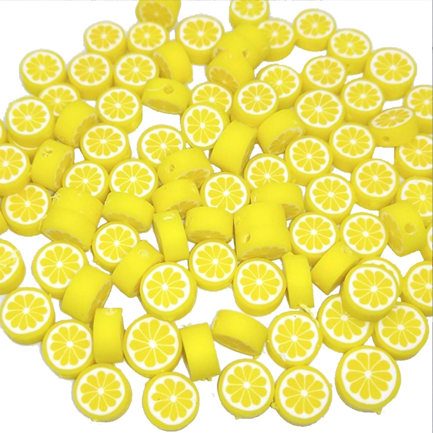 200Pcs Yellow Lemon Polymer Clay Beads Fruit Charm Flat Spacer Beads Making Supplies for Necklace Earring Bracelet Making Lemon Beading Supplies Arts, Crafts and Sewing 10mm