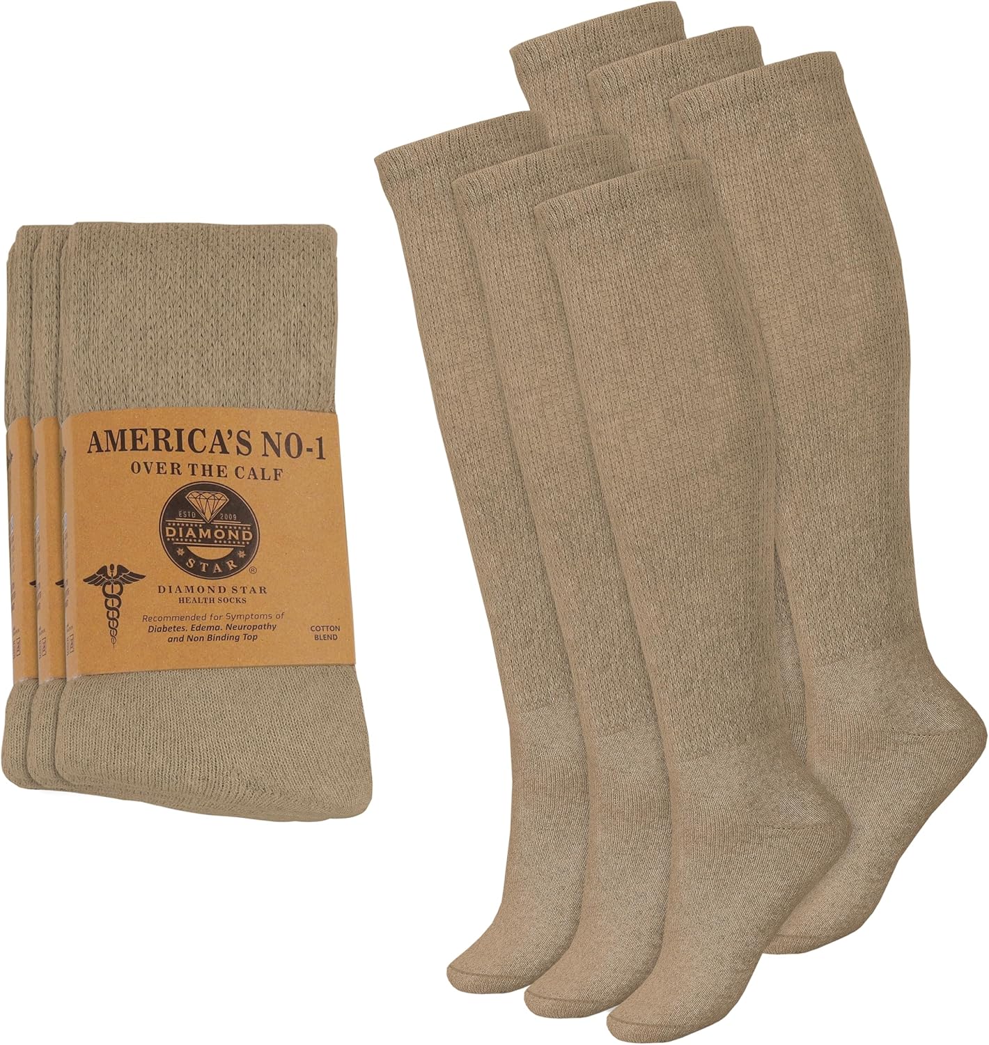 6 Pairs Diabetic Knee High Socks for Men, Over the Calf, Premium Cotton Comfortable Fit.
