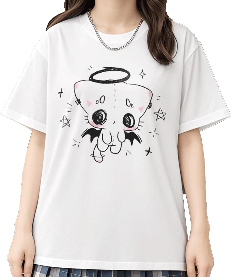 Kawaii Gothic Clothes Casual Style Crewneck Loose Short Sleeve Cute Graphic Cartoon Dizzy Cat Print T-Shirt