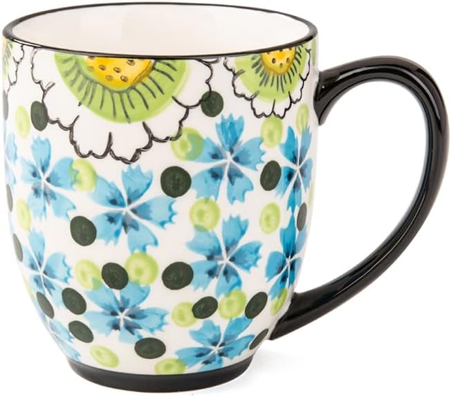 Ceramic Coffee Mug with Handle Vintage, Floral Cute Espresso Cups, Large Tea Cups and Drinking Mugs for Office and Home, Ideal Gifts for Women and Men (Blue 16oz)