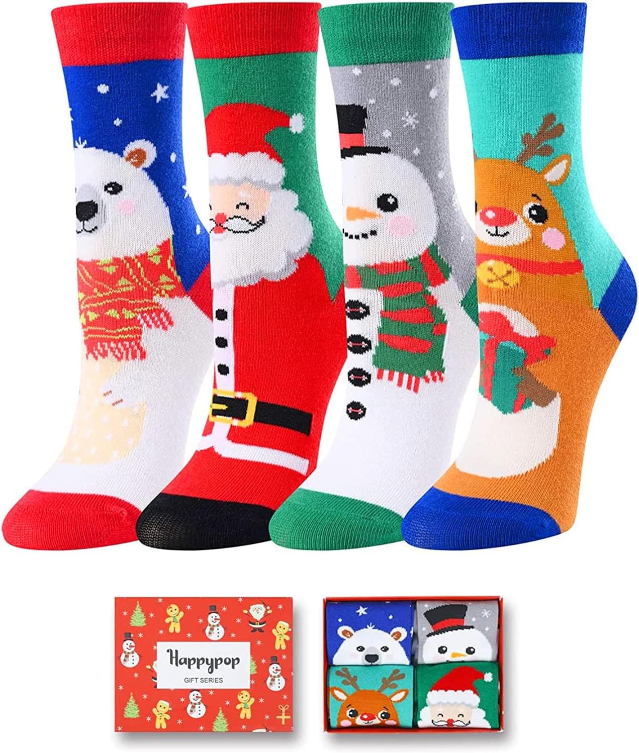 HAPPYPOP Christmas Socks for Teens - Holiday Sock Gift Ideas for Boys Girls 4 Pack with Card