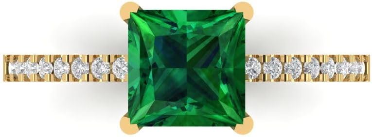 Clara Pucci 14K Solid Yellow Gold 1.62 ctw Emerald Solitairewith Accents Ring for Women | Anniversary, Birthday Gift | 6.5mm Princess Cut