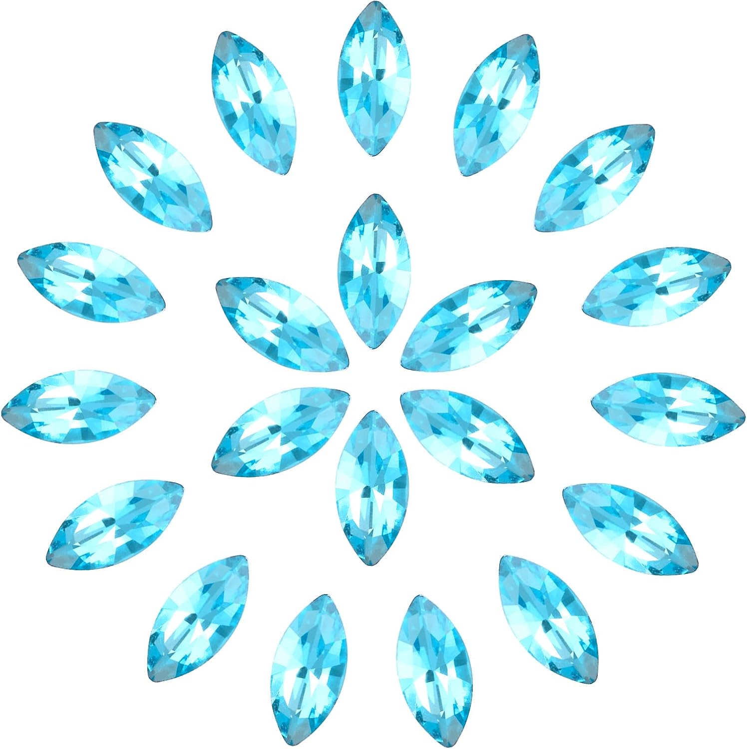 MECCANIXITY 30 Pcs Horse Eye Shape Rhinestones, 7 x 15 mm Point Back Rhinestone Beads for Jewelry Making Crafts Costume Crystal Embellishments, Shiny Lake Blue