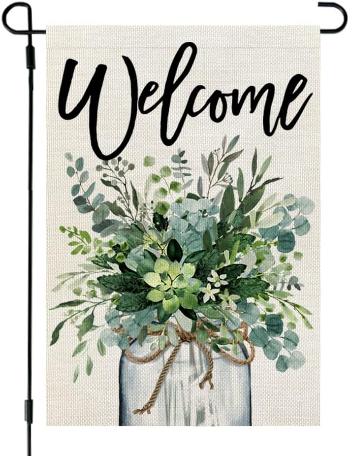 - Vibrant Spring Design: Our spring garden flag showcases a beautiful mix of blooming flowers, eucalyptus leaves, mason jar, and fresh greenery—perfect for brightening up your garden, yard, or patio this season