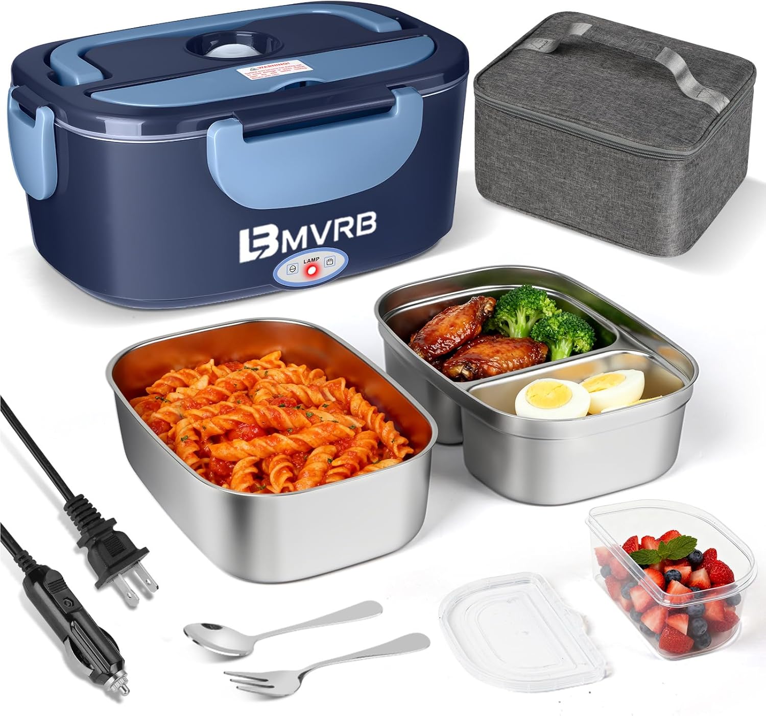 - Fast-Heating PTC Portable Heated Lunch Box for Fresh On-the-Go Meals:This LBMVRB 80W electric lunch box adopts PTC heating technology, featuring constant temperature & low-energy circulation—core perks of a top-rated heated lunch box. It keeps food evenly heated, locks in moisture to retain freshness, and only takes 15-30 minutes to reach optimal temperature. Perfect for busy professionals to enjoy warm, palatable on-the-go meals instead of cold takeout.