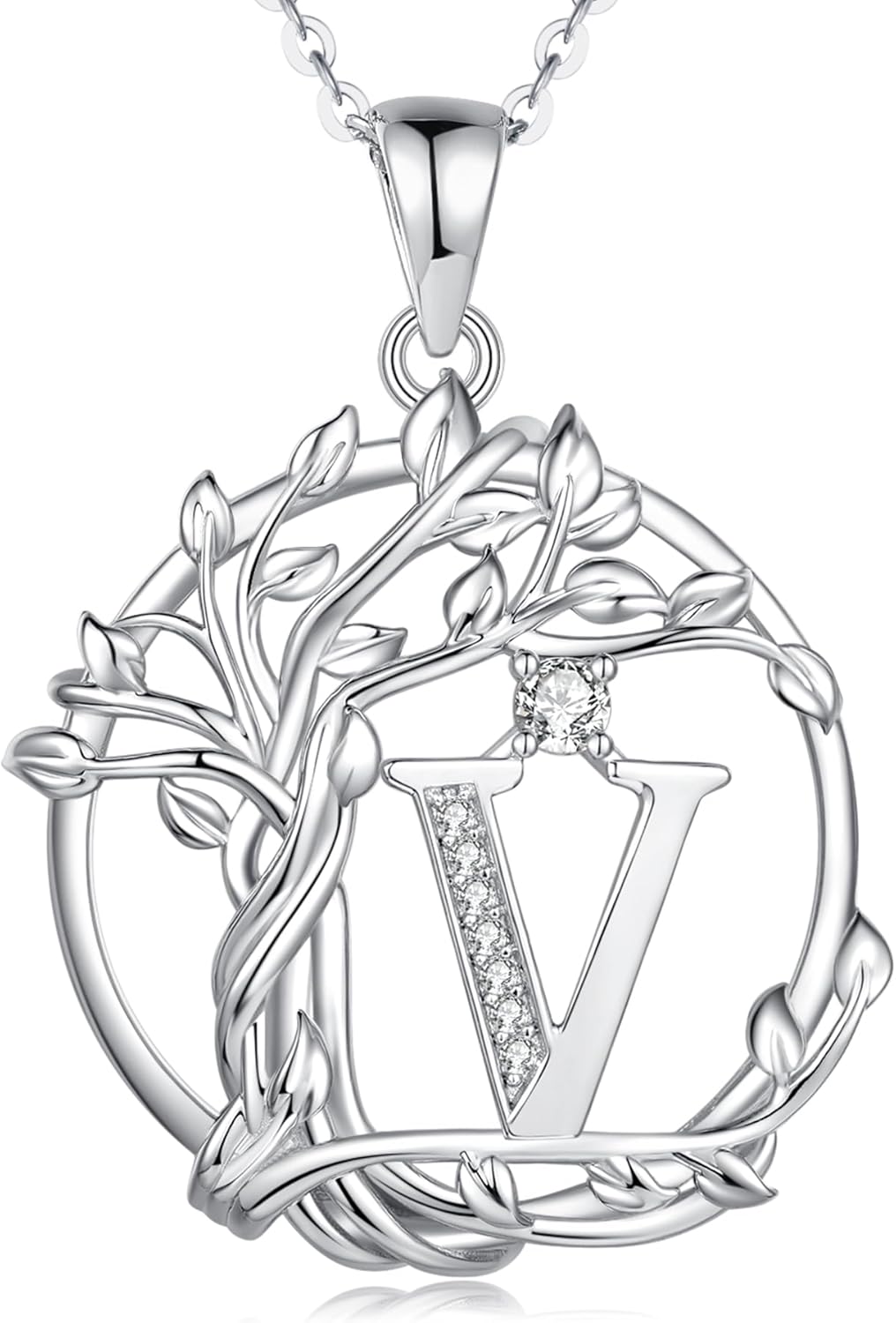 FANCIME Tree of life Initial necklaces for women, Sterling Silver Tree Jewelry Simulated Diamond Letter Pendant Cubic Zirconia CZ Personalized Birthday Mothers Day Gifts for Mom Wife Her
