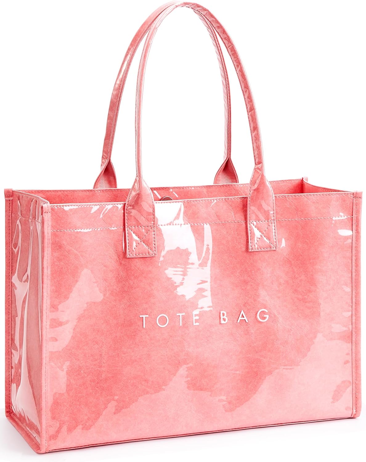 KALIDI PVC Tote Bag Women’s Kraft Paper Work Handbags Purses with Top Handle