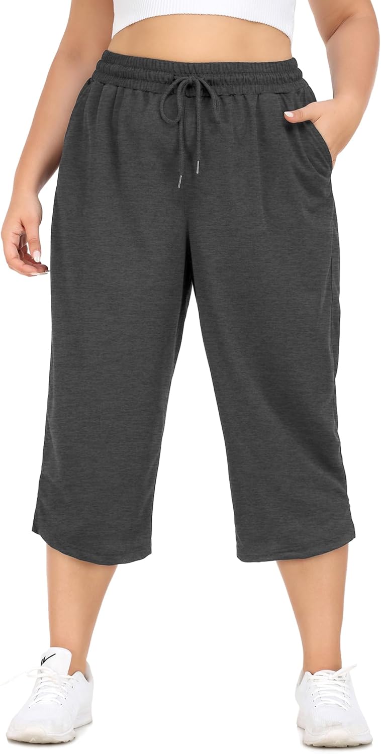COOTRY Plus Size Capris for Women Loose Drawstring Yoga Workout Sweat Pants with Pockets