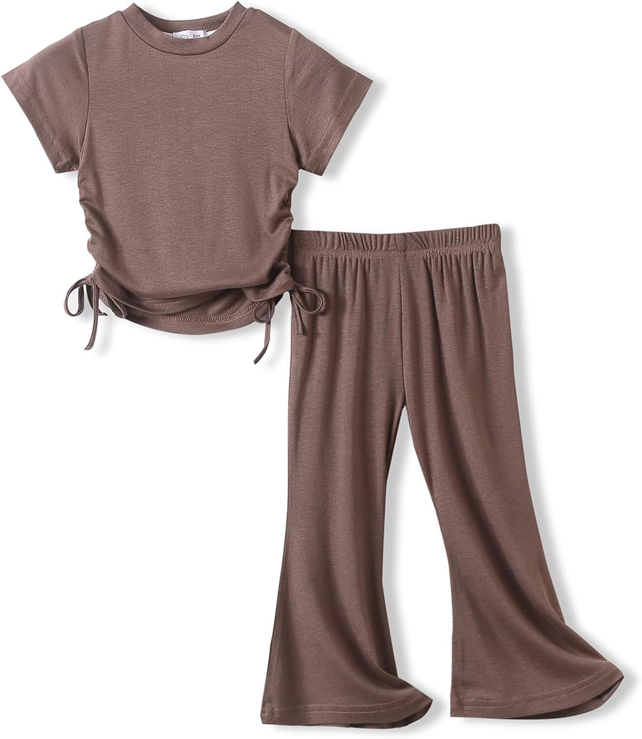 ACESTAR Toddler Baby Girls Clothes Set 2 Piece Summer Outfits Solid Short Sleeve T-Shirts Tee & Flared Pants Sets 12M-6 Years