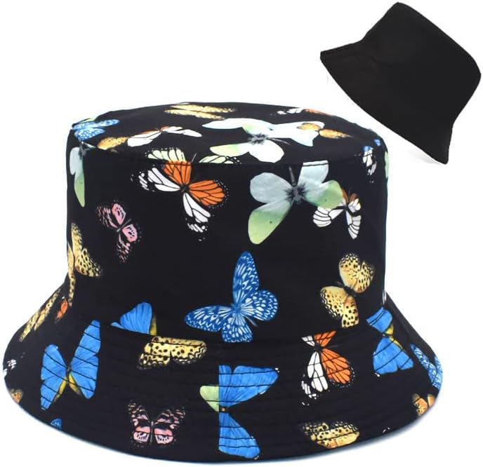Bucket Hat Cotton Double-Side-Wear Reversible Sun Hat for Women Men, Summer Vacation Travel Beach Packable Fisherman Hat