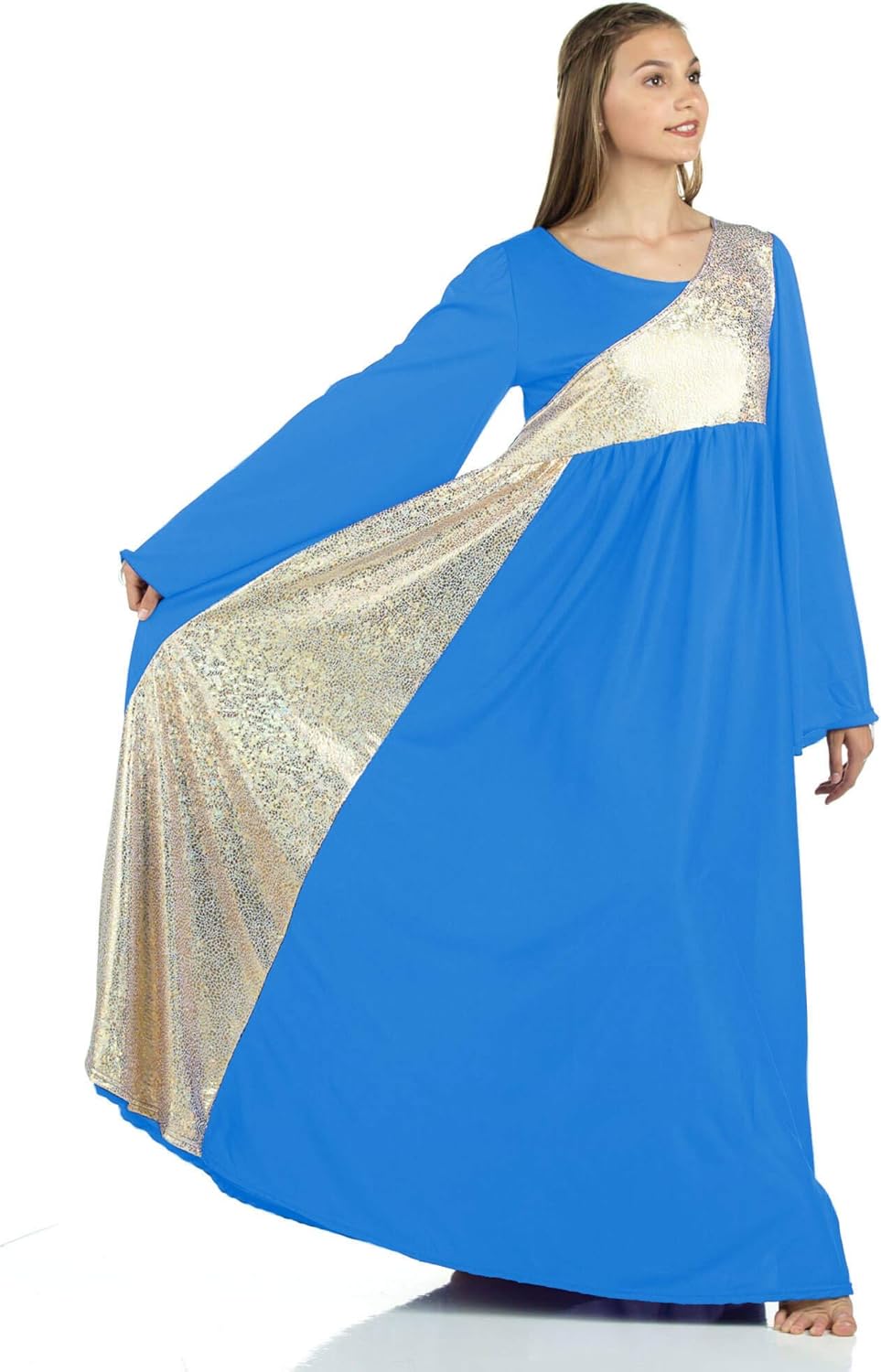 Danzcue Womens Shimmery Asymmetrical Bell Sleeve Dance Dress