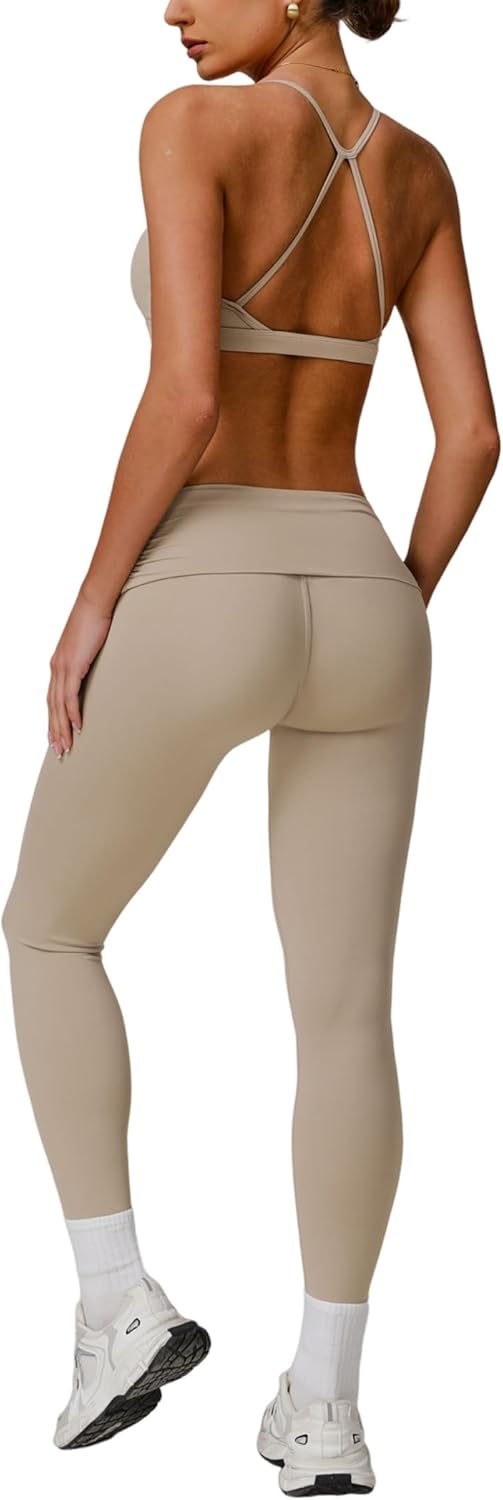QBGJTD Womens Workout Sets Two Piece Cross Back Sports Bras Matching High Waist Leggings Sets Gym Outfits Work Out Clothes