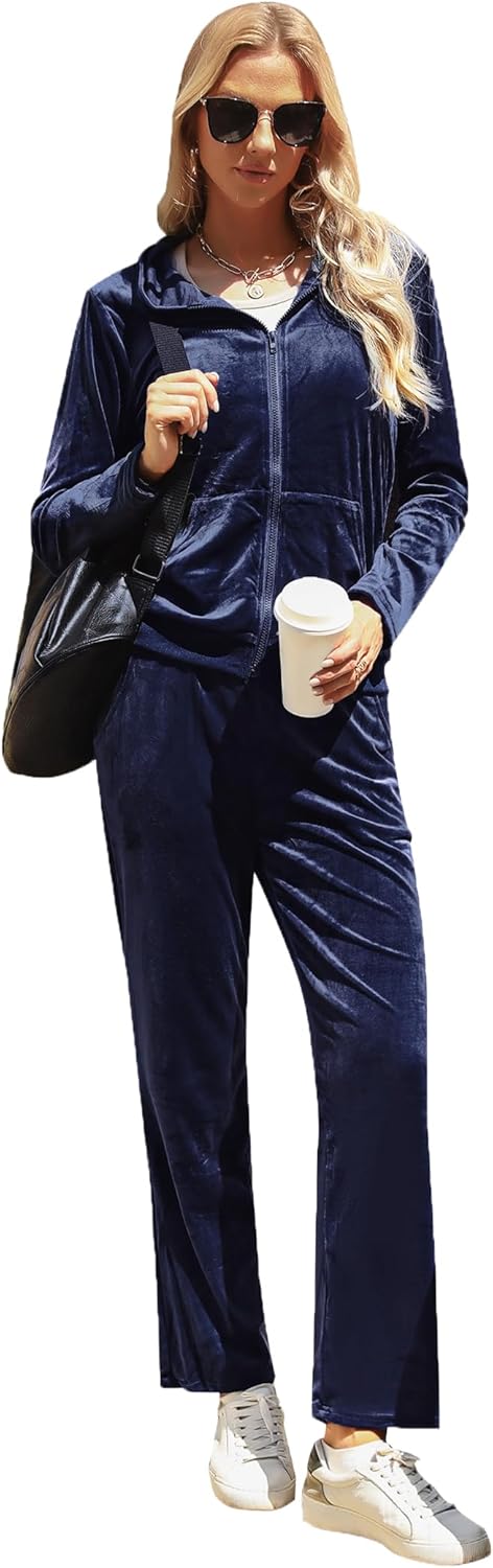 Marvmys Velour Tracksuit Womens 2 Piece Outfits Velvet Sweatsuit Jogging Suit Full Zip Up Hoodie and Sweatpants Set