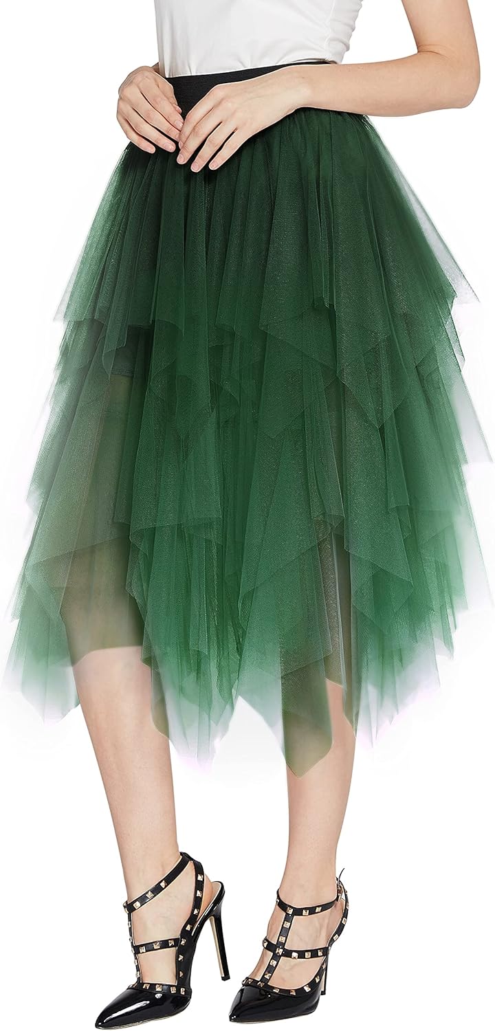 Urban CoCo Women's A-Line Mesh Tutu Skirt Fluffy Layered Tulle Midi Long Skirts with Elastic Waist