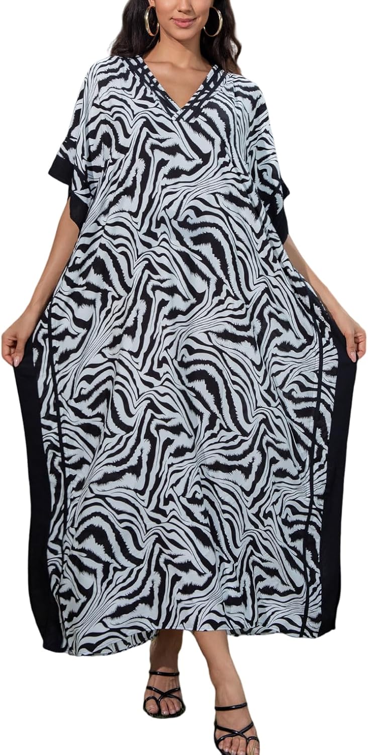 Kaftan Dresses for Women V-Neck Print Swimsuit Cover Up Plus Size Beach Caftan Lounge Dress