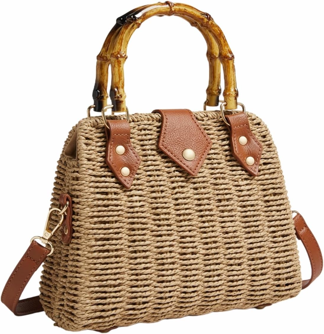 ZIDE Straw Crossbody for Women Woven Summer Beach Handmade Wicker Rattan Bamboo Joint Bag Boho Satchel for summer Holiday