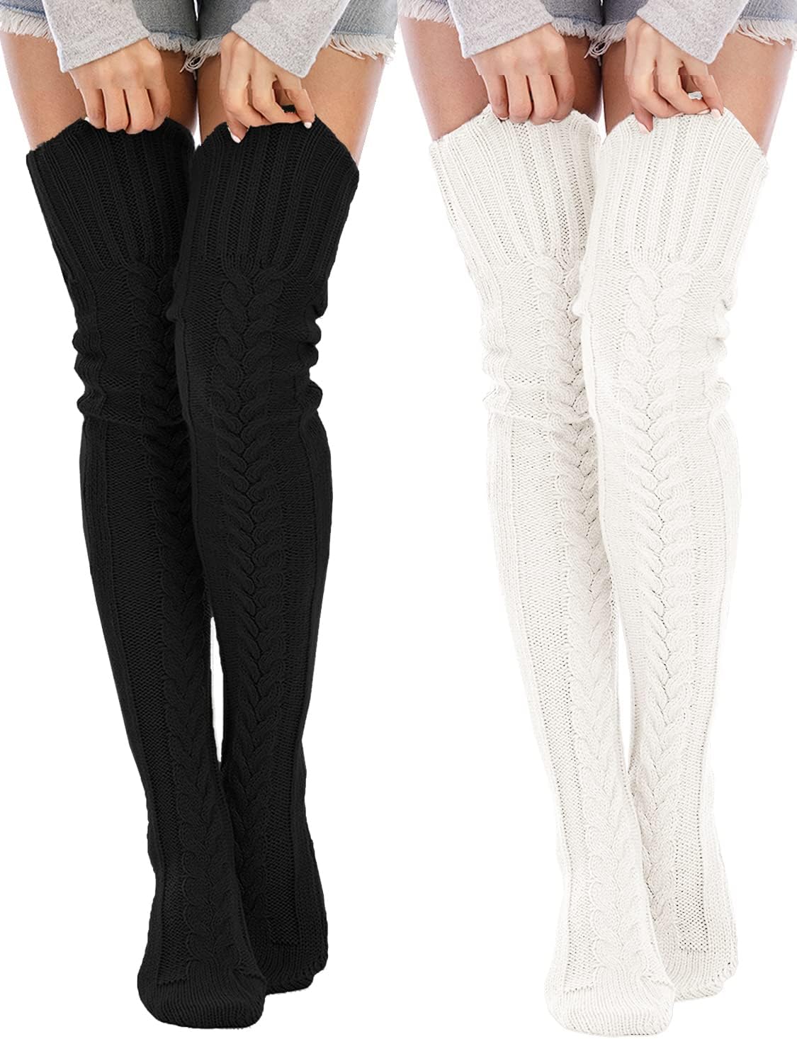 YELAIVP Women's Cable Knit Thigh High Socks Over the Knee Sock Extra Long Leg Warmers