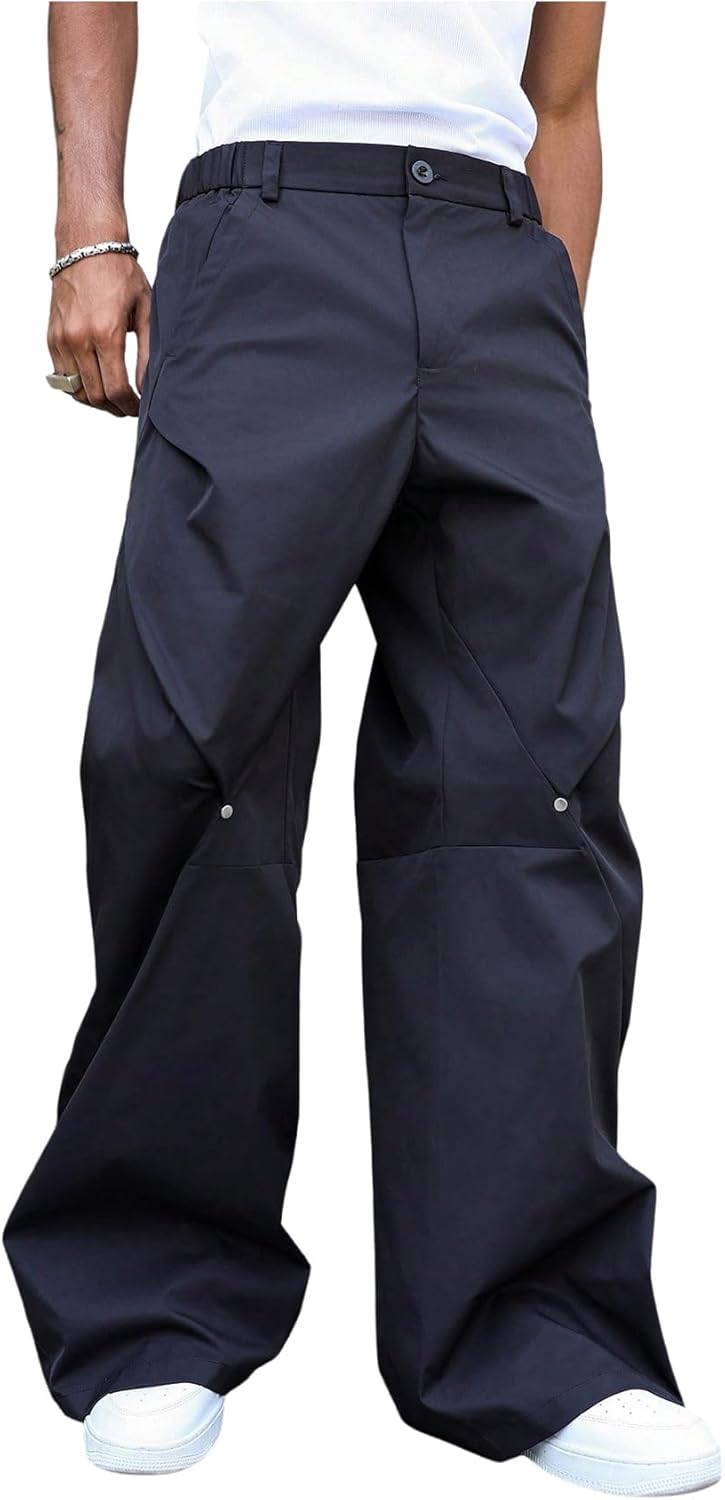 Men's Baggy Pants Pleated Wide Leg Dress Pants Zipper Fly Work Pant Casual Suit Trousers with Pockets