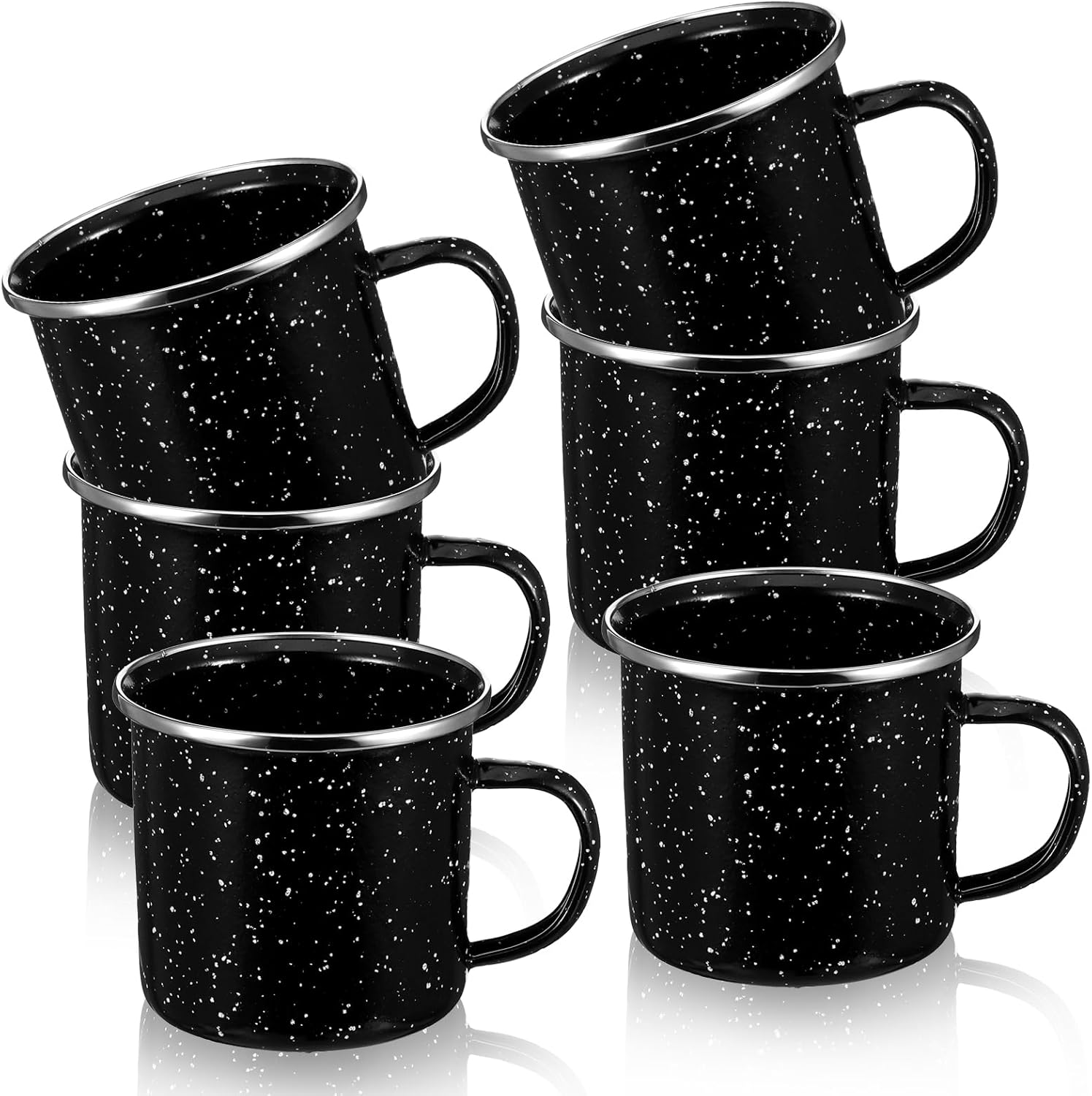 Tobeelec 6 Pcs Enamel Mug- Outdoor Classic Camping Mugs, 12 OZ Enamel Coffee Mug - Premium Nostalgic Mugs Set - Ideal For Early Morning Coffee Or Cold Beverages (Black)