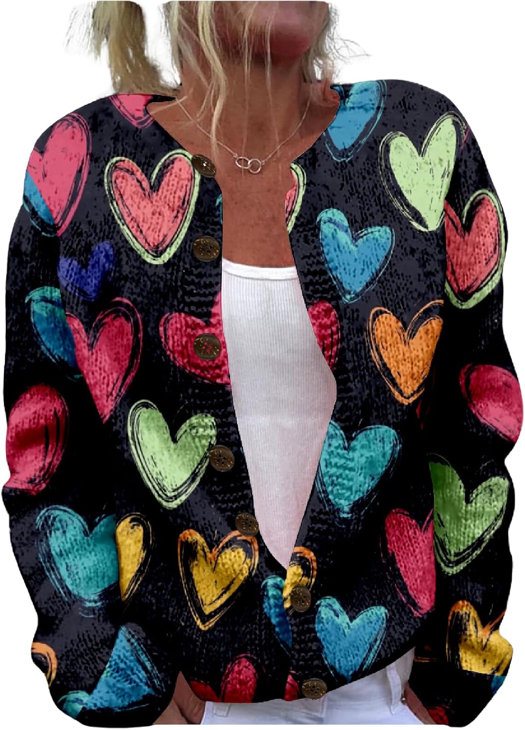 Heart Print Cardigan Valentines Sweater for Women Cute Chunky Button Up Plus Size 2025 Spring Fashion Warm Blouses
