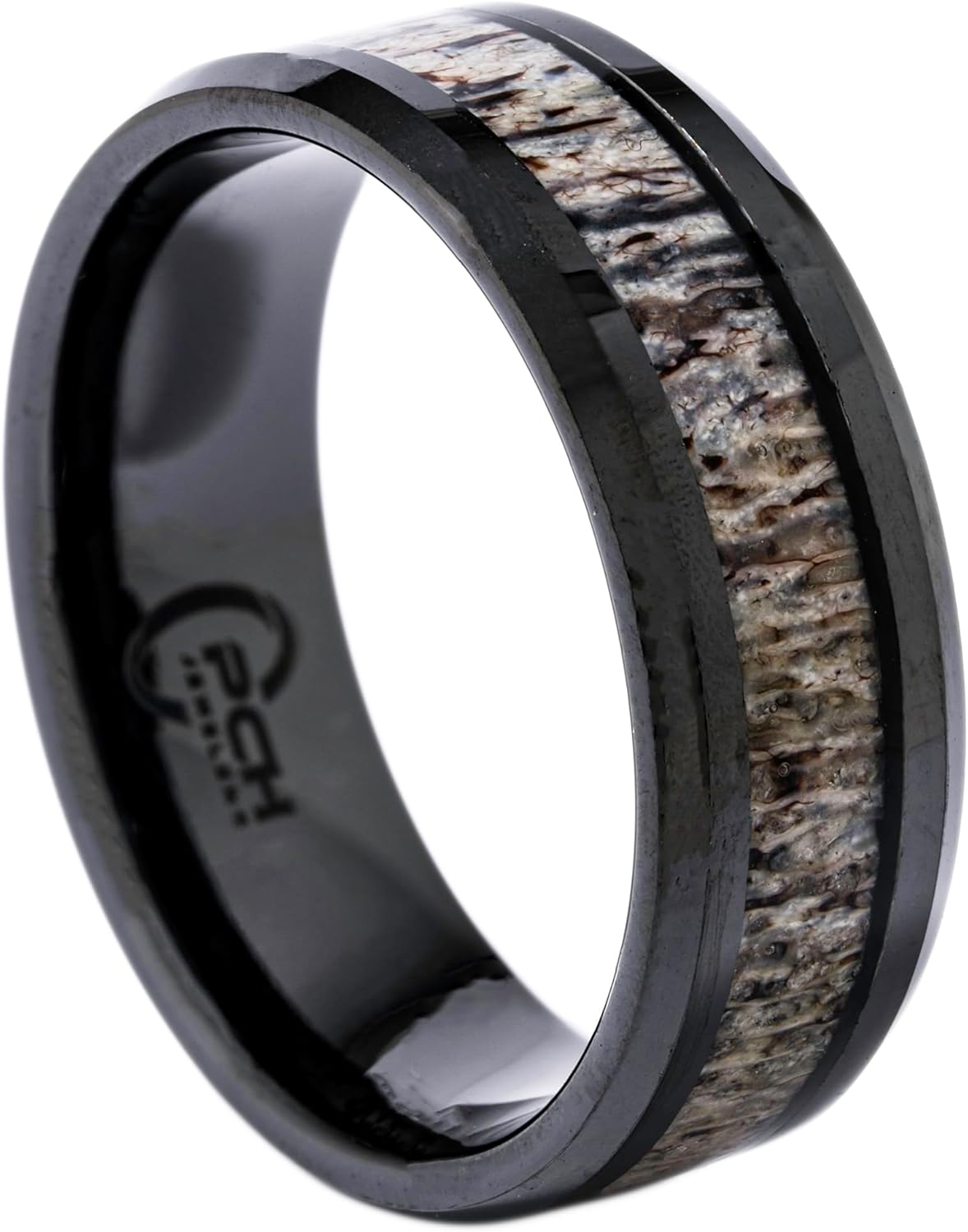 Deer Antler Ring Black Ceramic 8mm Gift or Wedding Band