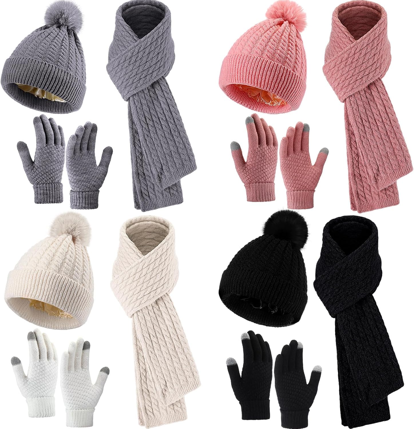 Liitrsh 12 Pcs Women Beanie Scarf Gloves Sets Knitted Beanie Winter Hat Scarf Warm Touchscreen Gloves
