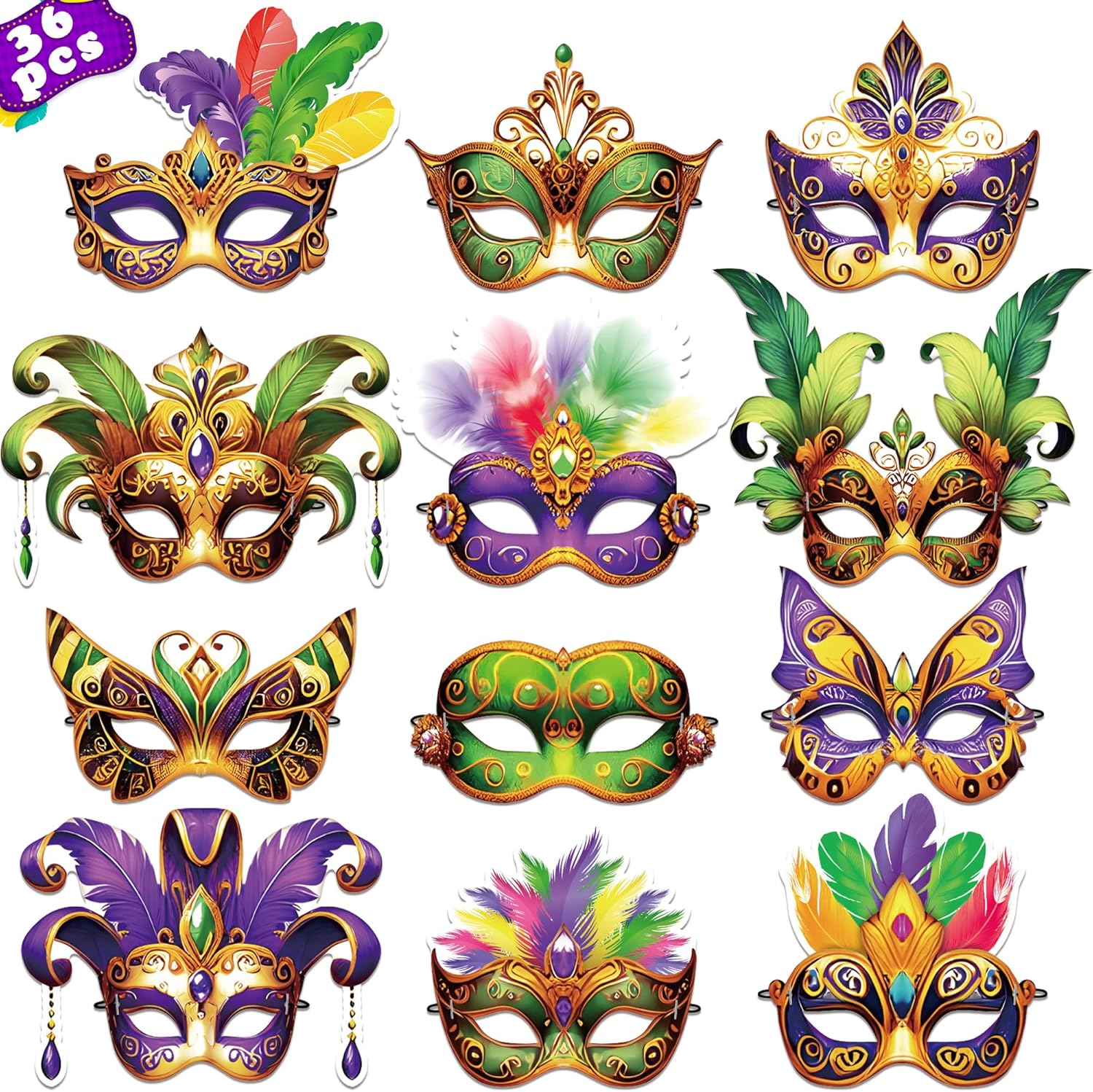 56PCS Mardi Gras Masks Bulk Set: Party Decorations Carnival Favors(Paper)
