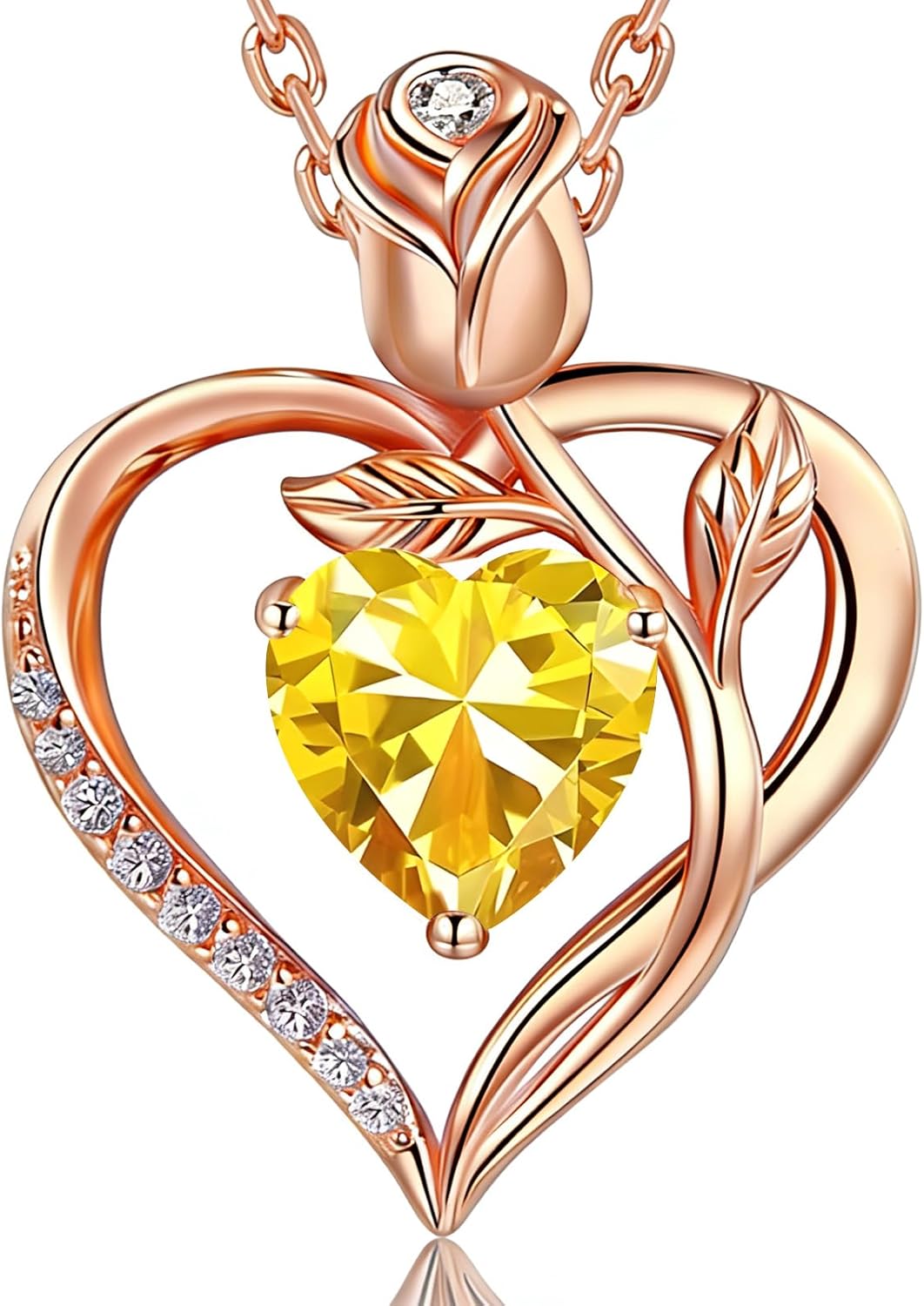 1.2CT Rose Heart Necklace Option of Moissanite or Lab-Grown Sapphire Ruby Emerald&More Necklace for Women Birthstone Girlfriend Necklace S925 Sterling Silver 18K White/Rose Gold Plated D Color VVS1 Gift for Wife Mother Daughter for Birthday Anniversary Valentine's Day Engraved 'I LOVE YOU'