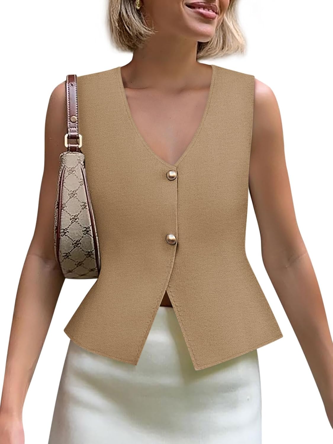 Yousify Womens Sweater Vest V Neck Button Down Crop Knit Tank Top Fashion 2025 Sleeveless Basic Cardigans