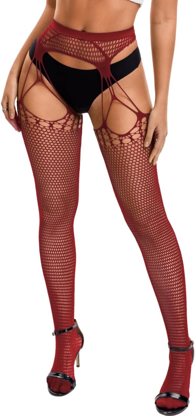 Sexy Women Suspender Pantyhose, Fishnet Thigh High Stockings With Garter Belt, Lace Tights Rave Outfit Going Out Club