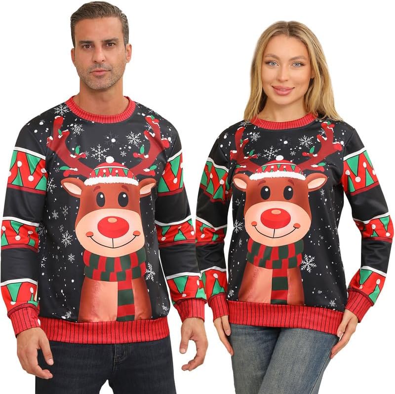 Ugly Christmas Sweatshirts for Women Men,Ugliest Unisex Womens Mens Sweatshirt,Funny Novelty Xmas Deer Sweater Shirt