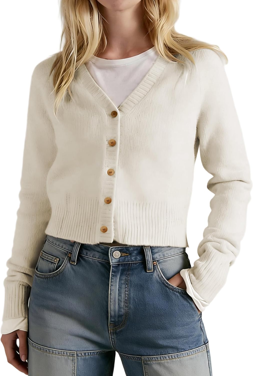 Women's V Neck Slim Fit Cardigans Button Down Long Sleeve Short Sweater Casual Comfort for Office Lounge