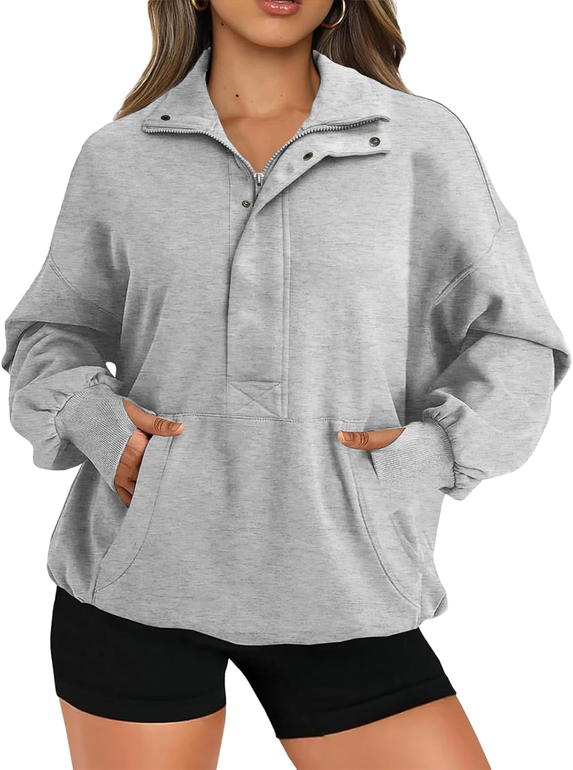 Sweatshirt for Women Long Sleeve Button Henley Neck Pullover Tops 3/4 Zip Up Stand Collar Fall Fashion Outfits